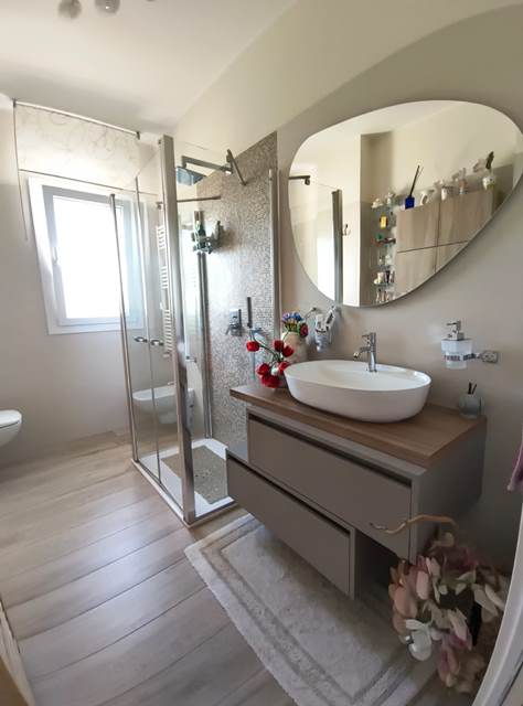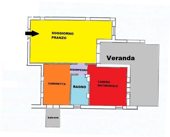 L'immobile si compone di un'ampia zona living con accesso a una veranda vivibile tutto l'anno, ideale per momenti di relax. La zona notte offre una camera da letto matrimoniale, una cameretta con balcone e un bagno moderno con doccia.